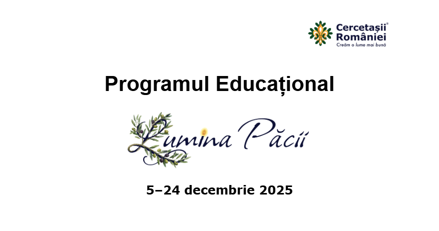 Programul educațional Lumina Păcii 2025 este rezultatul unei frumoase munci de echipă, în baza deciziei Consiliului Director ONCR și consultării cu cei aflați în proces alături de noi. Vă invităm să îl parcurgeți, sperăm să vă fie util în activitățile voastre dedicate Luminii Păcii. O să găsiți aici: Jurnalul faptelor bune – în variante adaptate pentru toate ramurile de vârstă, Harta luminilor din comunitatea mea, Poșta Luminii Păcii, ateliere pentru lideri, ghiduri de organizare a ceremonialurilor și multe, multe altele puse pe hârtie cu drag pentru cercetași.